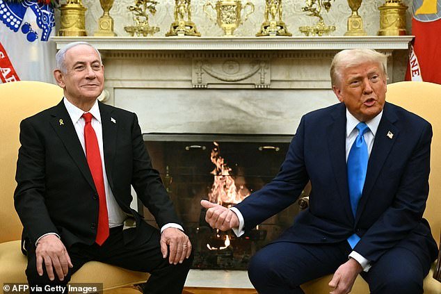 El presidente de los Estados Unidos, Israeli, estaba parado junto al líder de Israeli cuando anunció su audaz plan de convertir las ruinas en el Medio Oriente 'Rivera' el martes por la tarde