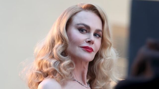 Kidman lució un audaz labio rojo y un ojo ahumado.
