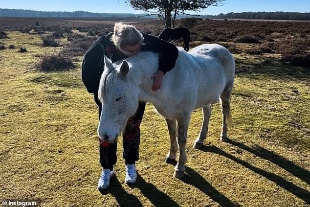 Sus dos millones de seguidores ahora están en el Post eliminado de Instagram, ex estrella de Toy, de 44 años, su mano estaba atada al cuello de la pony libre y su cabeza descansaba sobre el animal.