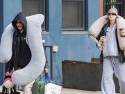 Pete Davidson lleva una almohada de embarazo para su novia Elsie Hewitt
