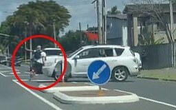 Un conductor de SUV en un momento increíble monta un carbohidrato...