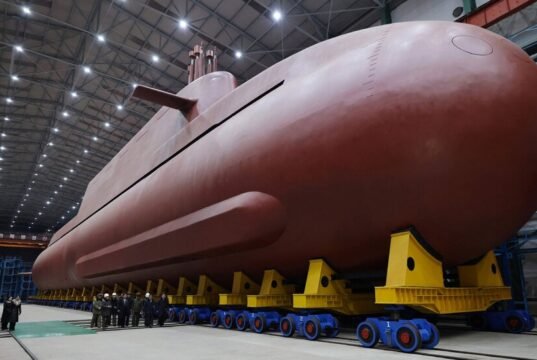 Corea del Norte ha presentado el casco completo de lo que llama un submarino nuclear.