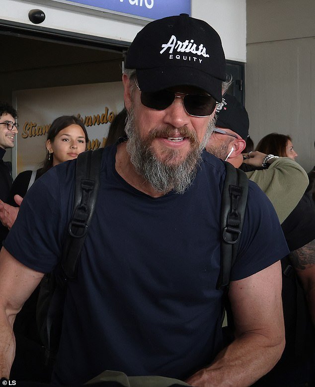 Una gran estrella de cine parecía completamente desconocida con barba de arbustos cuando llegó a Italia el lunes.