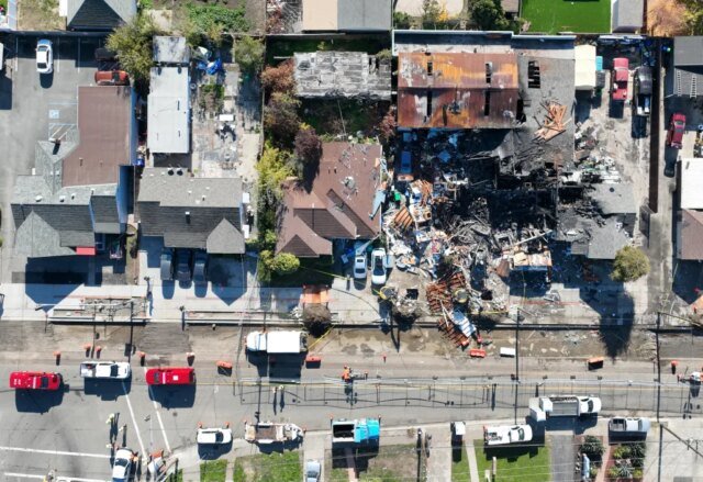 A pesar de estas advertencias, un video sorprendente de la explosión capturado por la cámara del timbre de un vecino muestra a un trabajador operando lo que parece ser una excavadora mientras una casa explota detrás de ella. Aún no está claro quién operaba la maquinaria pesada.