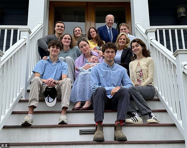 Joe Biden ha sido acusado de ser editado mal en la foto de la familia del domingo de Pascua (Fig: Biden y su familia están sentados en las escaleras)