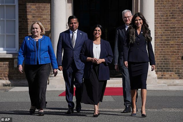 La secretaria del Interior, Shabana Mahmud, se unió a Christie Nom, Secretario de Seguridad Nacional de EE. UU. En la reunión de cinco ministros nacionales