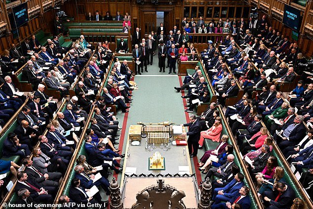 El ministro de negocios, Gareth Thomas, está hablando con miembros del Parlamento en la Cámara de los Comunes.