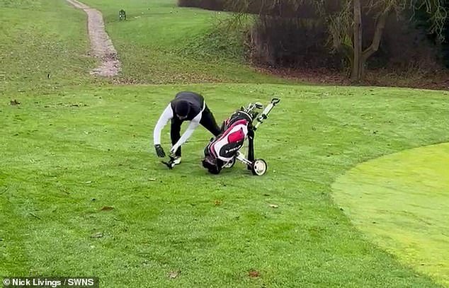 Nick Livings, de 36 años, estaba jugando con sus amigos Chris y Alex en el Coulsdon Manor Golf Club en el sur de Londres cuando el pájaro comenzó a aterrorizar al grupo.