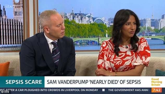 En The Good Morning Britain el viernes, Ranvir y coanfitrión Rob Rinder, de 46 años, hablaron con la estrella del Chelsea Sam Vandarpump sobre hacer sobre su vida debido a la sepsis.