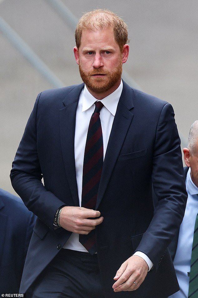 El duque de Sussex escuchó 5,000 millas para quedarse en los Tribunales Reales de Justicia en Londres y barrió la entrada de la entrada.