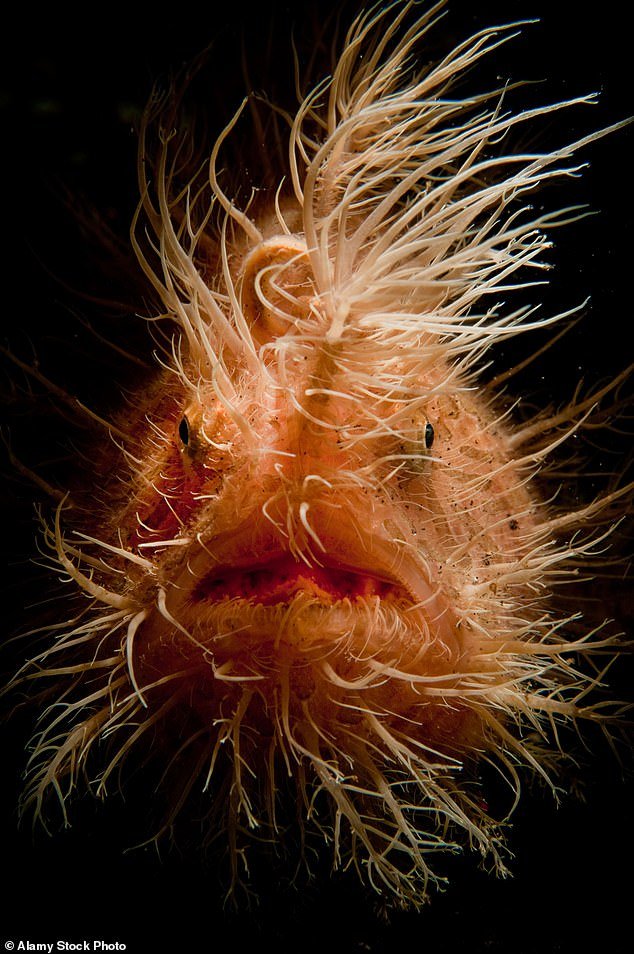 Estos peces a veces tienen filamentos que parecen pelos. El pez sapo peludo es un ejemplo.