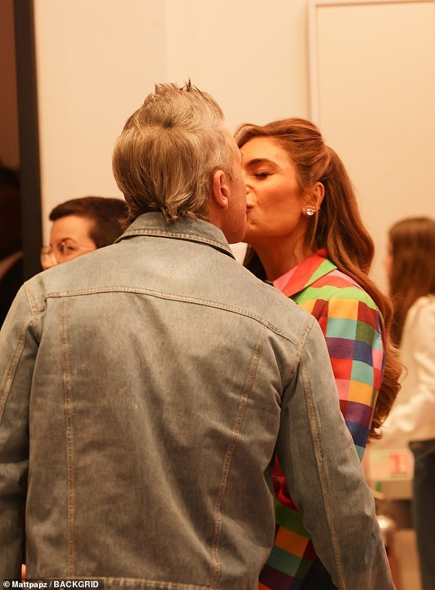 La pareja apareció con gran espíritu mientras se mezclaban con los amantes del arte dentro de la obra de arte de Robi