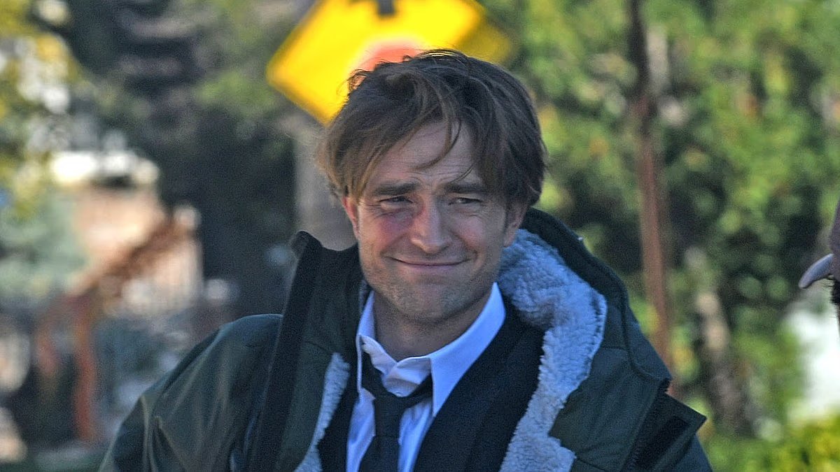 Envuelto en un abrigo acolchado y forrado de lana, se puede ver a la estrella de Batman luciendo un moretón oscuro alrededor de su ojo derecho, posiblemente maquillaje SFX para el papel.