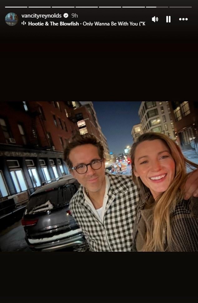 Ryan Renolds dividió una selfie amorosa con su esposa Blake en su amarga batalla legal con Justin Baldoni.