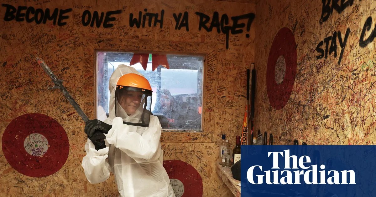 soyCuando le resulta difícil contar hasta 10 cuando aumenta la ira, una nueva tendencia ofrece un enfoque más práctico. Están apareciendo cuartos de trapo en todo el Reino Unido, que permiten a los apostadores romper siete campanas de televisores, platos y muebles viejos.