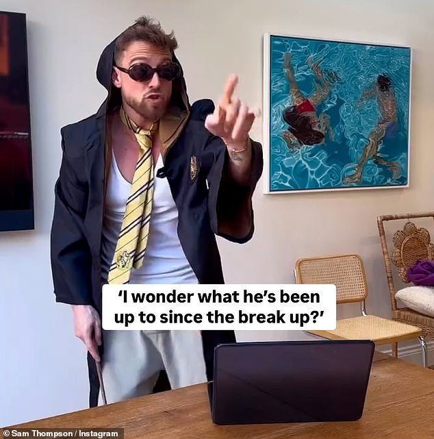 Con la leyenda de la publicación: “Me pregunto qué era de The Break?”, Sam fue visto subiendo en una hoja de medio espalda mientras tocaba la canción de baile mezclada con el rap de Harry Potter.