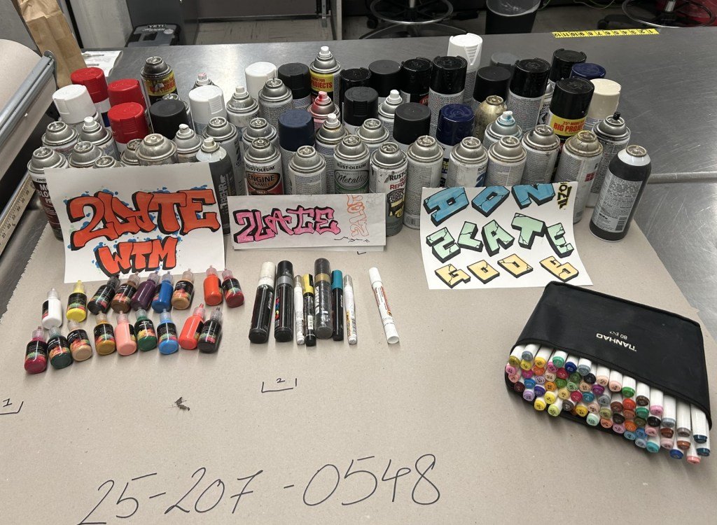 Las autoridades dijeron que “2late” fue arrestado en San José y los oficiales recibieron equipos de graffiti y pintura en aerosol en su residencia, dijeron las autoridades.