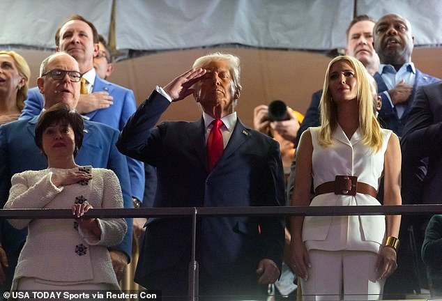 El presidente Donald Trump e Ivanka Trump respondieron mientras jugaba el himno nacional