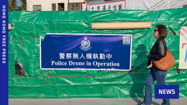 El lunes, un reportero de HKFP vio un cartel de “Operación policial con drones” erigido en el muelle Yung Shu Wan en la isla Llama, que ha estado en exhibición durante más de una semana.