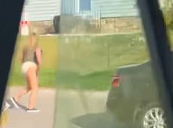 El clip ha terminado que la mujer de repente regresa a su auto, verde verde