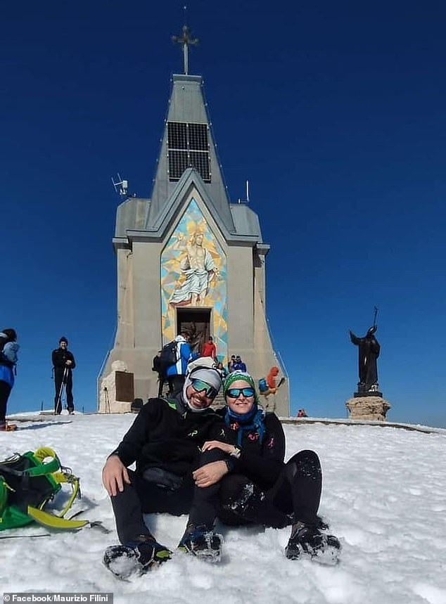Solo unas horas antes de la tragedia, Marizio Philine y Laura Barbiery sonriendo en la cima de la cumbre nevada