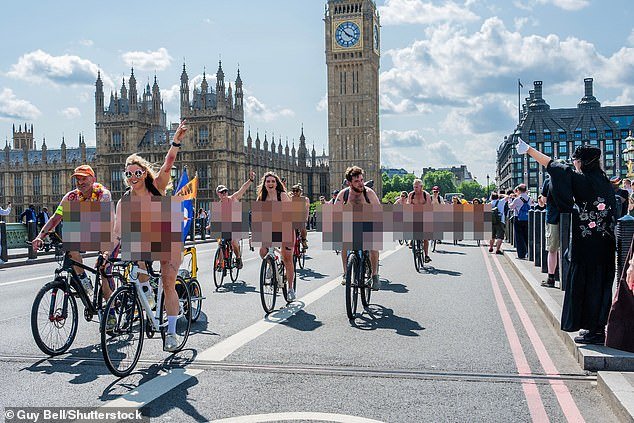 ¡Solearán dolor por la mañana! Los ciclistas desnudos salieron a las calles de Londres para protestar contra la cultura del automóvil (pero cuando la policía se acercó a su rey Charles y les pidieron que usaran ropa)