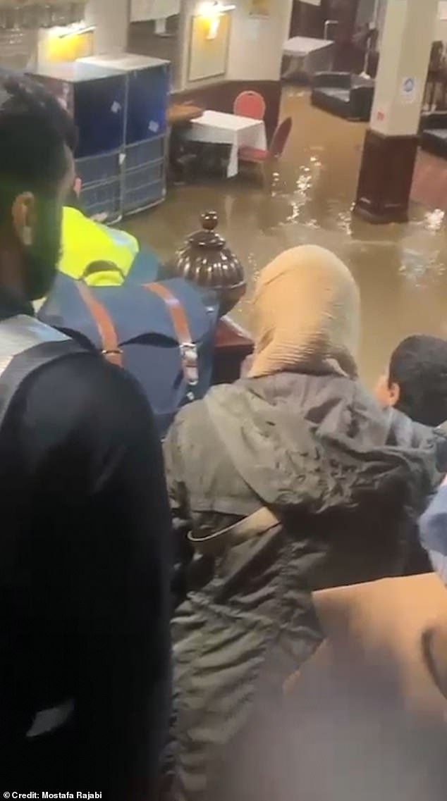 Los solicitantes de asilo que se alojaban en el hotel fueron fotografiados saliendo de la propiedad inundada con sus pertenencias.