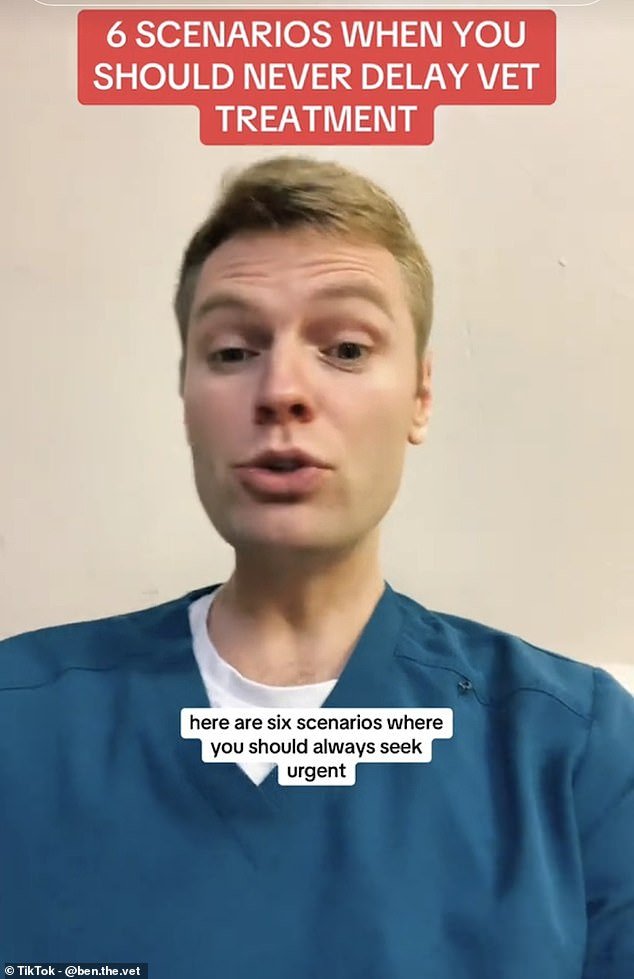 Entre su lista no exhaustiva de seis afecciones, Ben el veterinario (en la foto) enumeró la ingestión de tóxicos, dificultad respiratoria y más.