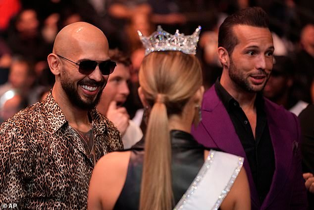Andrew Tate (izquierda) representado en Las Vegas el 8 de marzo