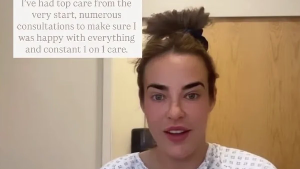 Stephanie Davis admitió que le preocupaba “no despertarse” mientras se filmaba en un nuevo clip antes de que le quitaran los implantes mamarios el domingo.