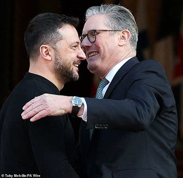 El primer ministro Sir Care Starmer, presidente ucraniano, Vloadimir Jelnsky, tiene una cálida bienvenida a la Casa Lancaster en Londres para una cumbre de líderes europeos