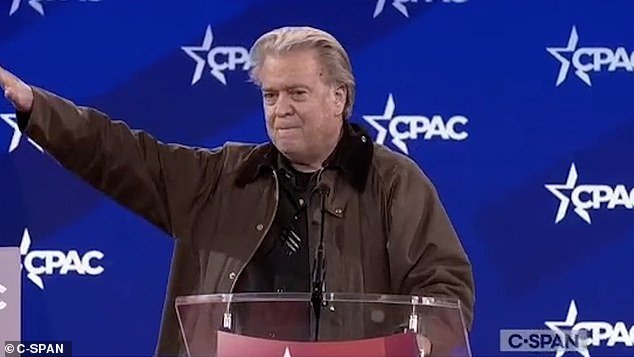 ‘¿Estás listo para luchar por Trump? ¿Estás listo para luchar por esta república? ‘Bannon le preguntó a la multitud del CPAC el jueves. ‘Si perdemos si nos fuimos, la única forma de nuestra victoria es que si nos rinde nos rinde, son la única forma de ganar, si estamos de vuelta, y no nos iremos, no nos rendiremos, no lo hemos Vete, pelea la pelea ‘