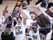 Se ve a dos niños corriendo por el jardín con cestas en la mano mientras comienzan a buscar huevos de Pascua.