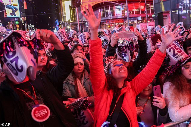 Los neoyorquinos celebraron el Año Nuevo con un millón de personas que desafiaron la lluvia para llenar Times Square y ver caer la icónica bola.