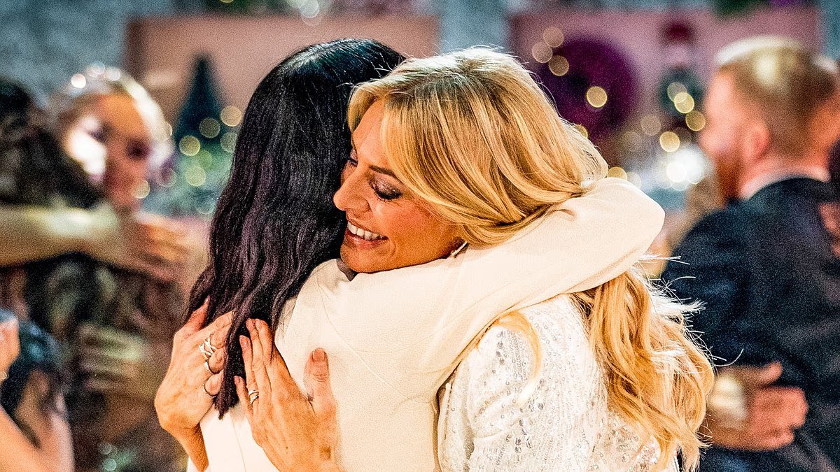 Vestidas de festivo blanco y crema, Tess, de 56 años, y Claudia, de 53, compartieron un emotivo abrazo y bailaron mientras los concursantes famosos las elogiaban por su trabajo en el programa.