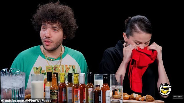 Selina Gómez y su productora musical Benny Blanco aparecieron el jueves en Hot Was, los fanáticos se sorprendieron al ver la sensibilidad de Selena a las alitas de pollo picantes, cuando Benny los molestó.