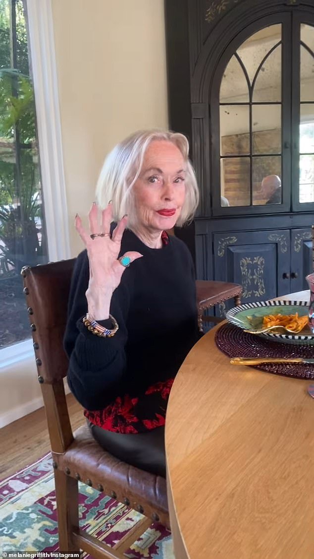 ‘¡Mi hermosa madre cumplió 95 años ayer! ¡¡Está feliz, sana y emocionada!!’ Griffith escribe sobre su madre, que lucha contra la demencia.
