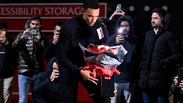 Y Alexander-Arnold depositó flores en memoria de los hermanos Jota en las afueras de Anfield el lunes por la noche.