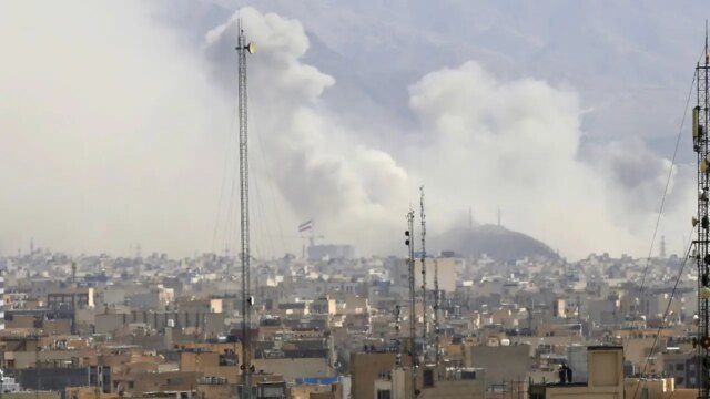 El humo se eleva sobre el centro de la ciudad después de que el ejército israelí lanzara una segunda ola de ataques aéreos contra Irán el sábado. (Fatemeh Bahrami/Anadolu vía Getty Images)