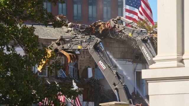El presidente Donald Trump autorizó la demolición del ala este sin pasar por los canales adecuados, según alega una nueva demanda presentada por un importante grupo de preservación histórica. En octubre, un equipo se estrelló contra la pared del ala este.