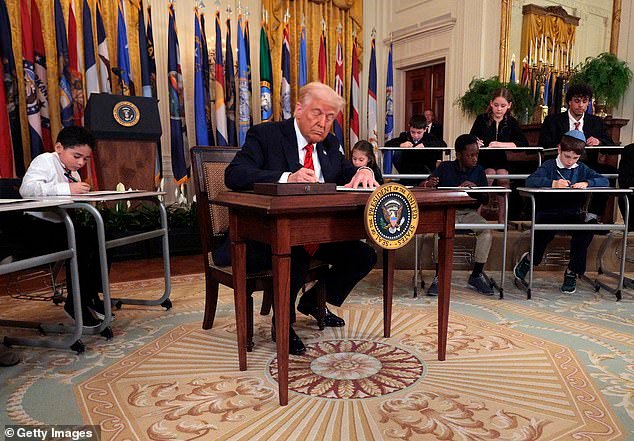 Rodeado de niños de todas las edades, el presidente Donald Trump ha firmado una orden ejecutiva para comenzar el departamento de educación “no bueno”.