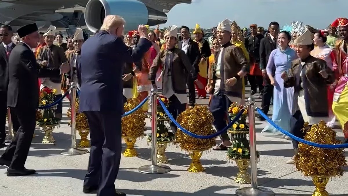 El presidente Donald Trump saludó a los bailarines malasios con su movimiento característico al iniciar su muy esperado viaje de una semana al extranjero por Asia.