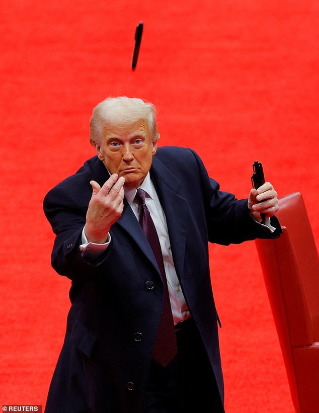 Trump se jacta de ahorrar ‘1 billón de dólares’ con un movimiento de muñeca antes de arrojar un bolígrafo a sus fanáticos en el mitin de inauguración