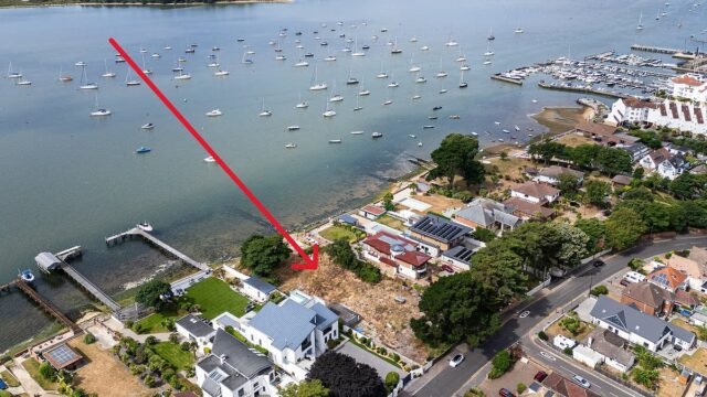 ‘La parcela está situada en una posición envidiable junto al agua, con vistas panorámicas del puerto de Poole a la isla de Brownsea y al Arne.