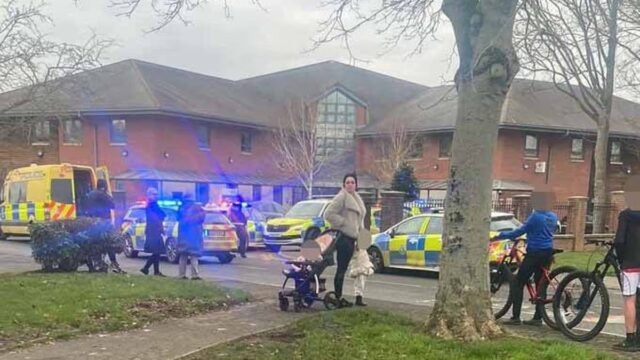 La policía de Merseyside se apresuró al Newton Community Hospital en Newton-le-Willows, Merseyside, poco después del mediodía.
