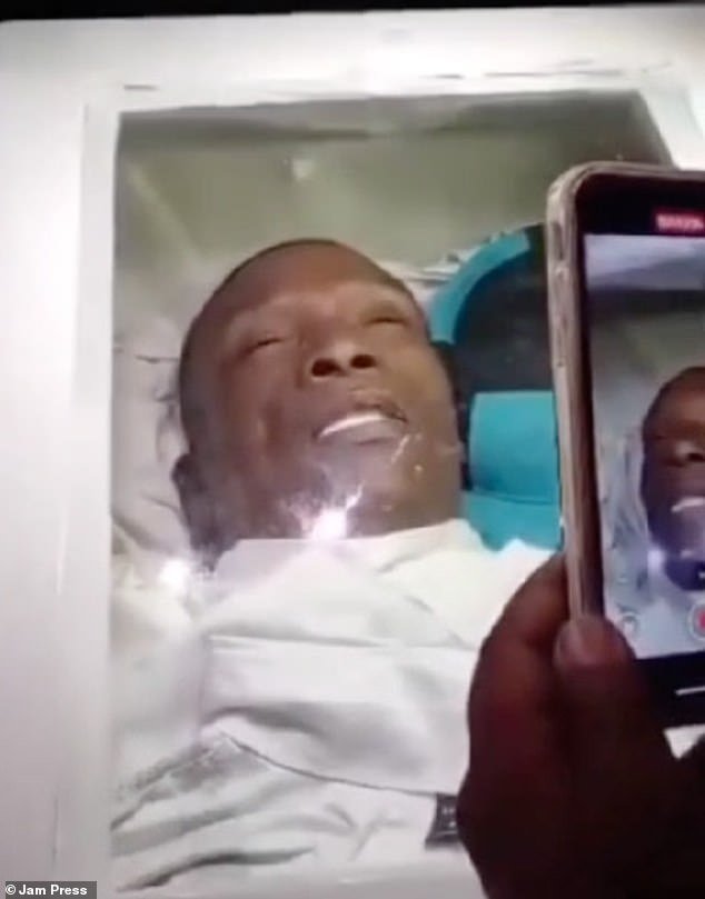 Este es el impactante momento en que un hombre muerto pareció abrir los ojos mientras yacía en un ataúd frente a los conmocionados dolientes en su funeral.