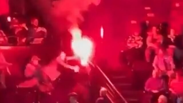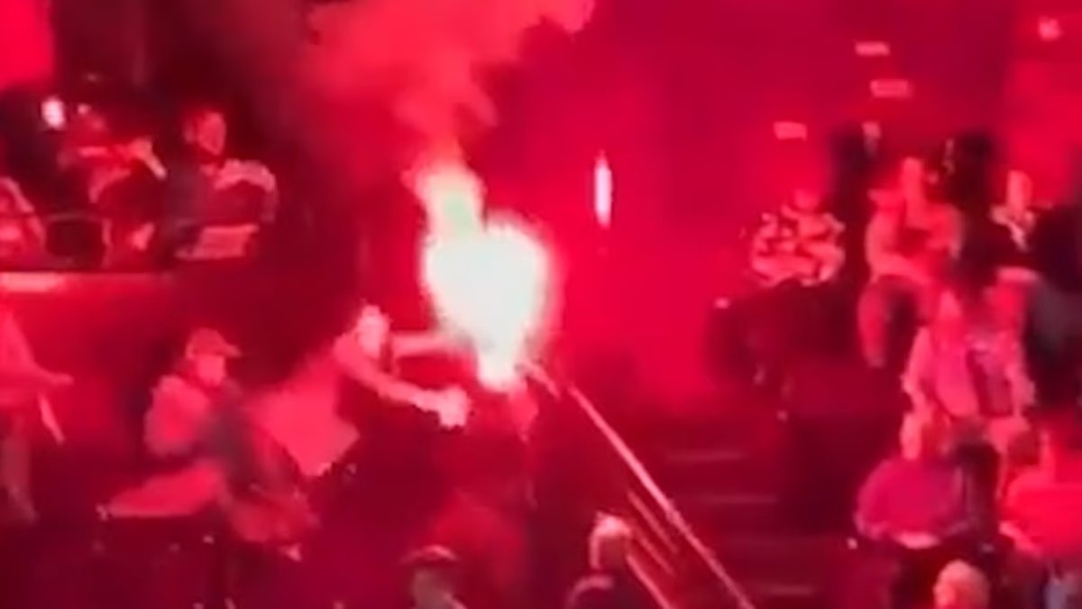 Imágenes horribles muestran a los espectadores reaccionando después de que partidarios pro palestinos encendieron hogueras y llenaron el lugar de humo rojo.