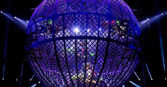 El video del incidente del viernes en Sant’Anastasia, Italia, distribuido a los medios de comunicación locales, mostró a los tres artistas dando vueltas alrededor de una esfera de metal en un escenario oscuro, iluminado sólo por luces LED en sus motocicletas y trajes.