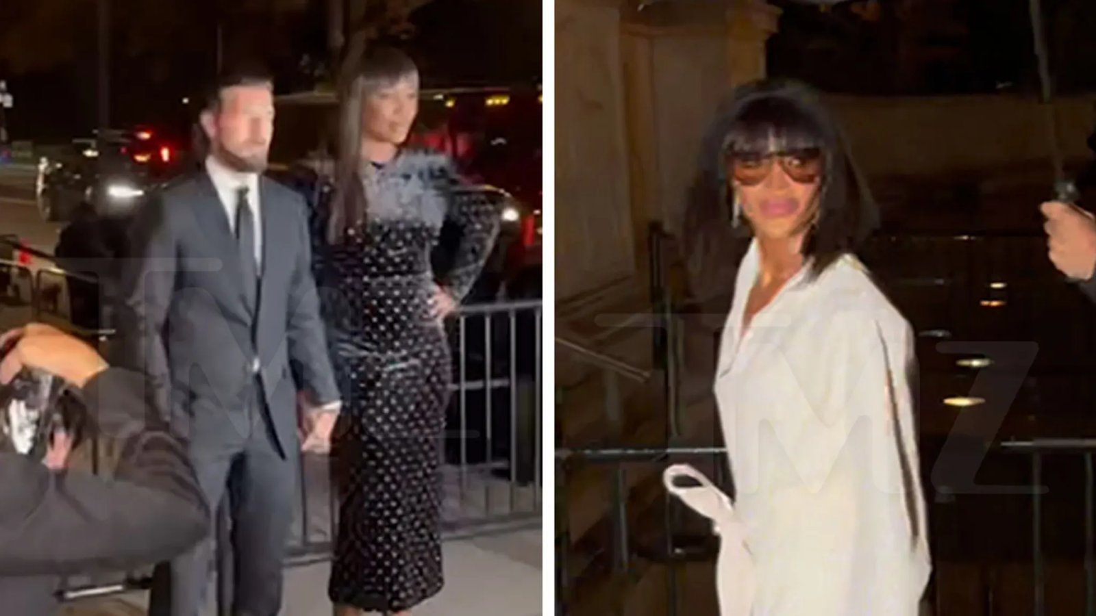 Según nuestra fuente, Naomi apareció aproximadamente una hora y media después y posó para algunas fotos en las escaleras antes de dirigirse al evento principal.