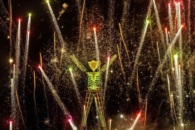 El hombre ardiente fue destruido como resultado de ardientes vientos, lluvias e inundaciones antes de tener la oportunidad de ir a campistas e instalaciones de arte. El sábado se conoce como folk en el rally épico y comunitario, se puede esperar un clima más inestable antes de la gran estatua de madera.